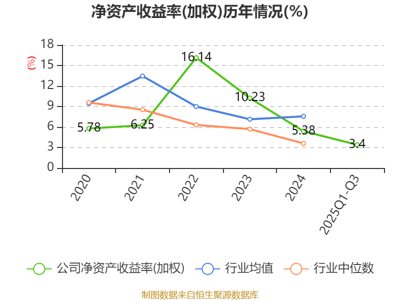 盈利能力方面, 2025年前三季度公司加权平均净资产收益率为3.4%,同比上升0.29个百分点。公司2025年前三季度投入资本回报率为2.41%,较上年同期下降0.23个百分点。