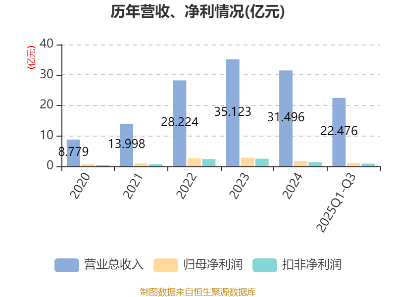 资产重大变化方面,截至2025年三季度末,公司固定资产较上年末增加85.97%,占公司总资产比重上升5.71个百分点;在建工程合计较上年末减少96.24%,占公司总资产比重下降5.06个百分点;货币资金较上年末减少17.09%,占公司总资产比重下降3.02个百分点;交易性金融资产合计较上年末增加63.66%,占公司总资产比重上升2.37个百分点。