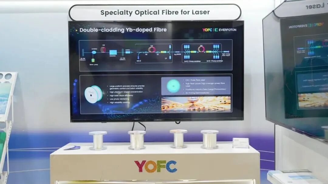 在光纤通信领域,长飞公司重点展示了器件保偏光纤、有源光纤及天文光纤等特种产品系列。